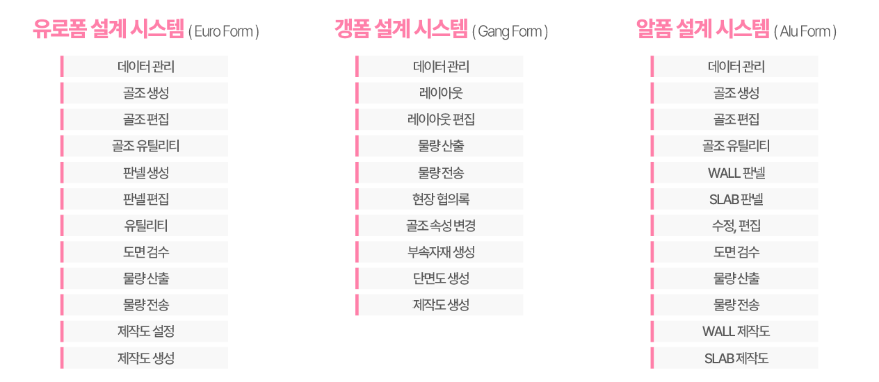 유로폼, 갱폼, 알폼 설계를 위한 자동화 시스템은